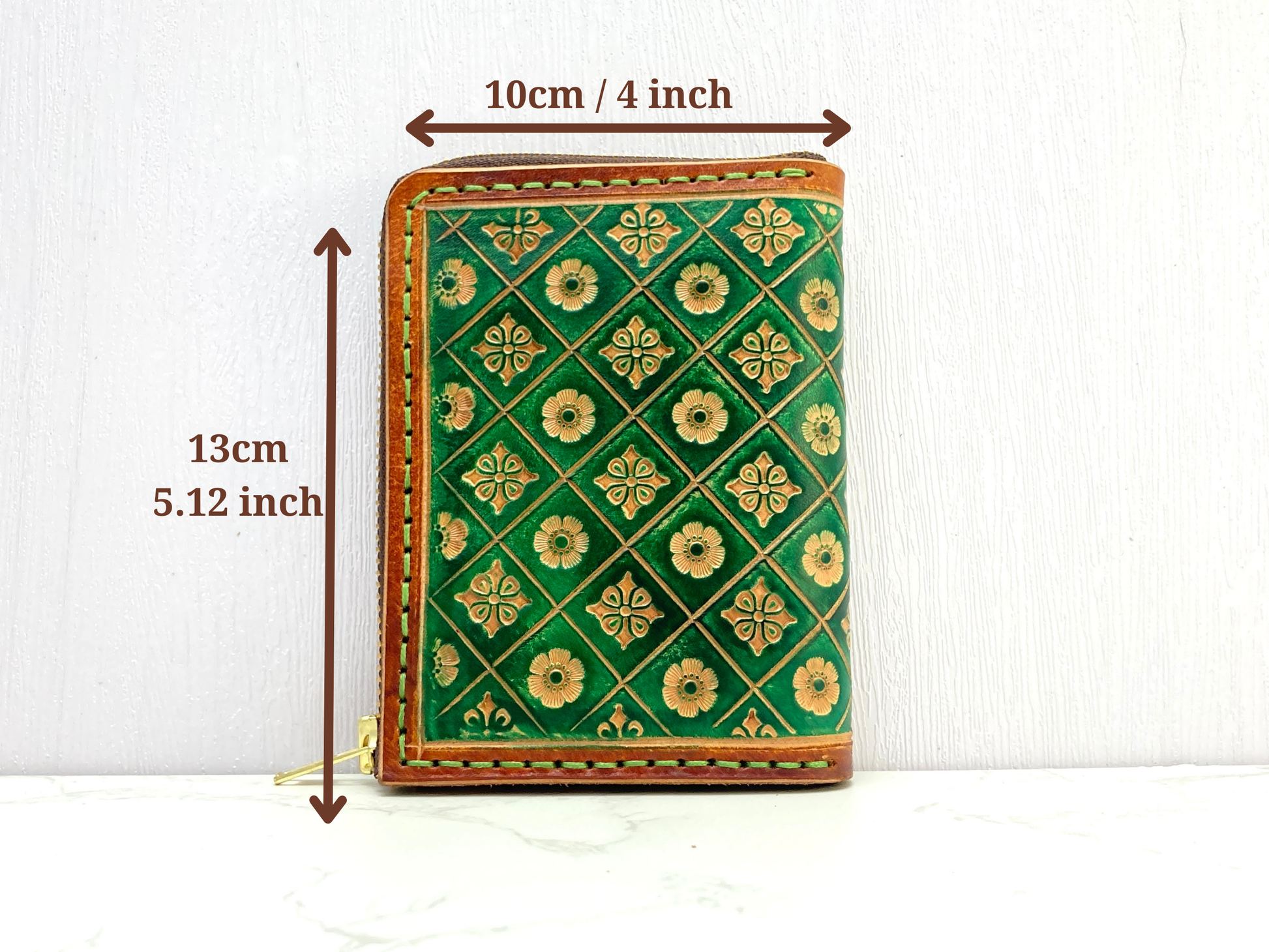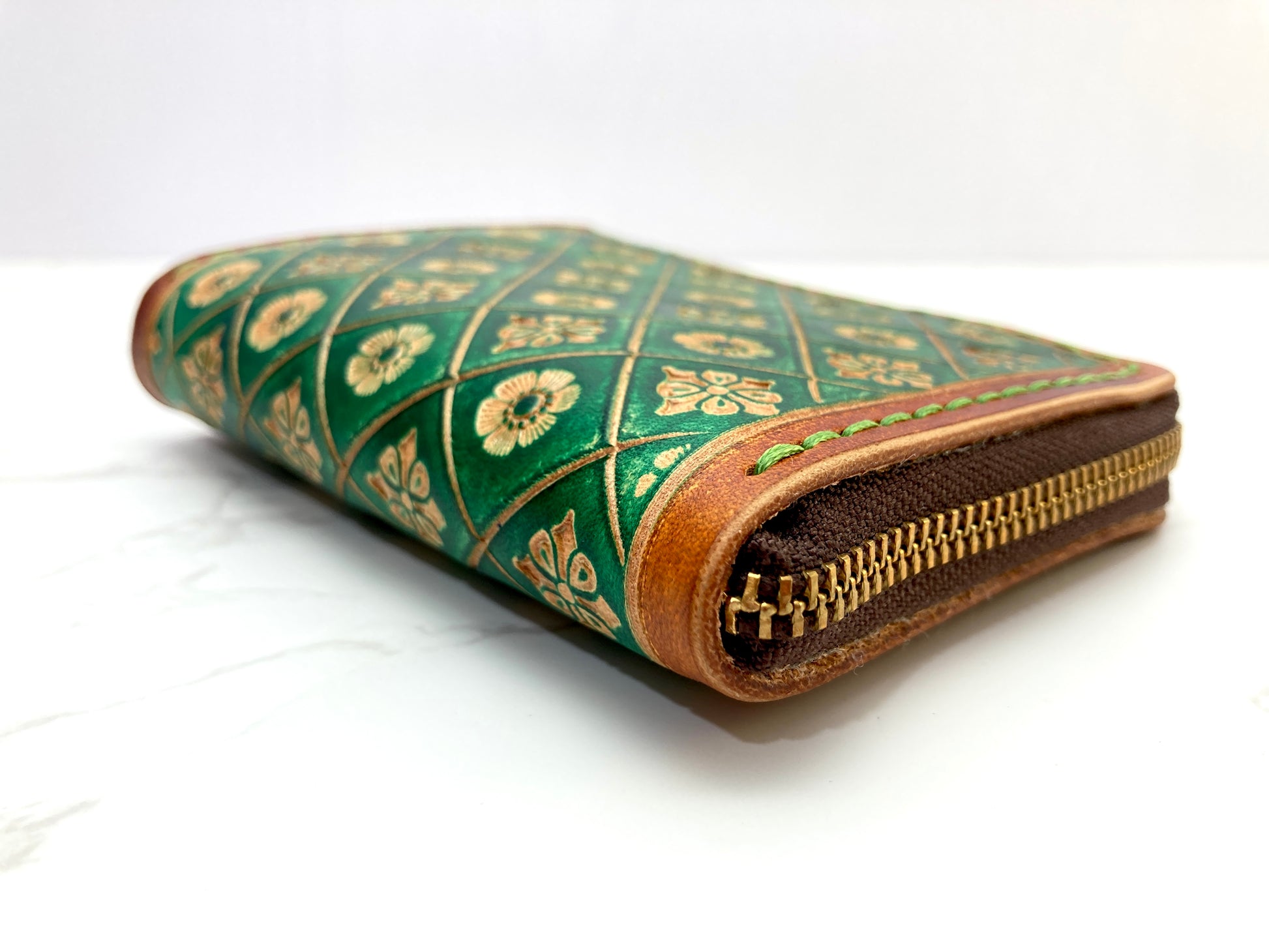 Inspired by the beauty of the natural world, this design features hand-tooled organic patterns that evoke the serenity of forests and greenery. Paired with a rich green hue, it symbolizes growth, harmony, and a connection to nature, making it perfect for those who cherish the outdoors.