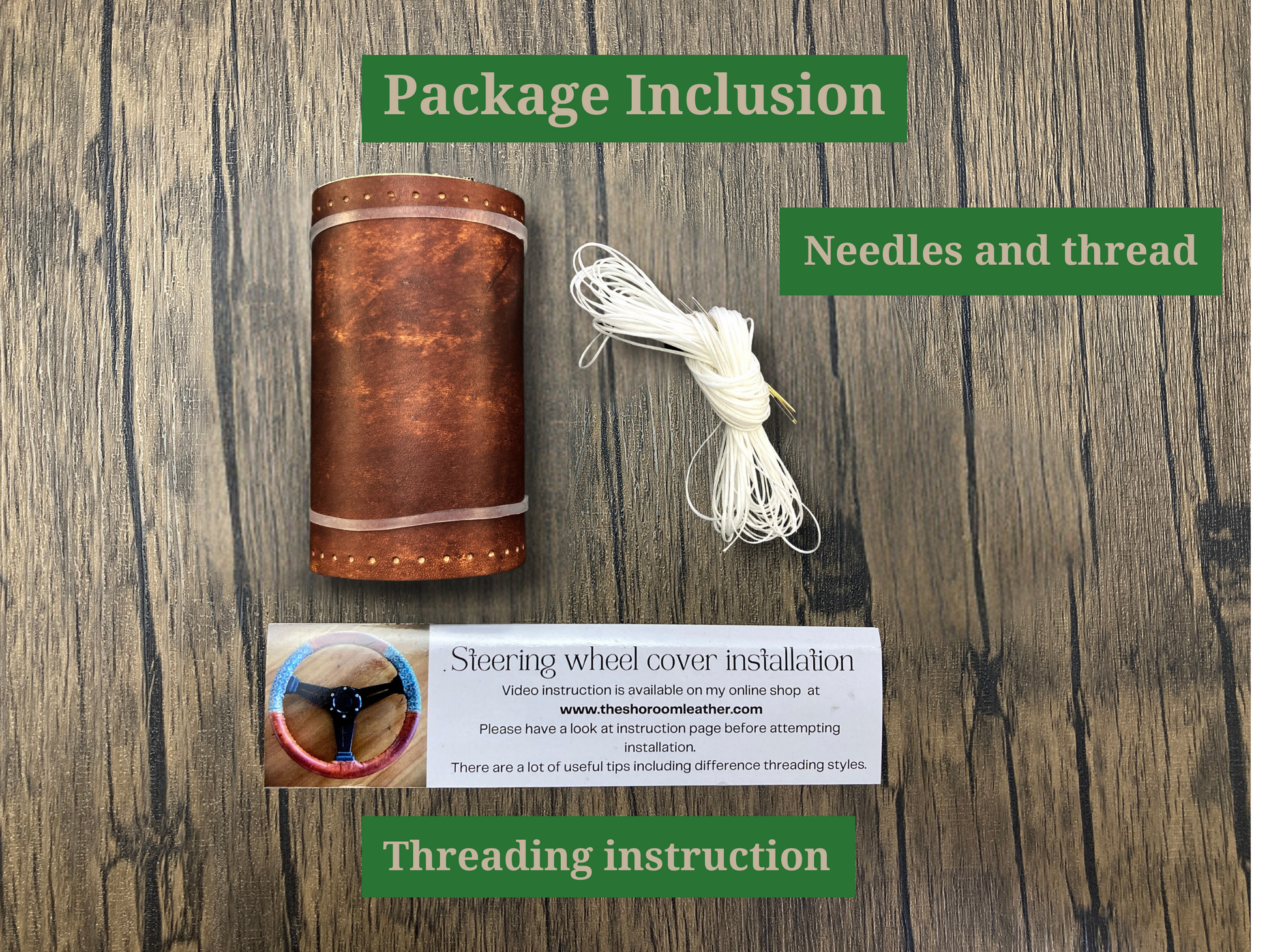 Please watch the short instruction video to learn how to thread your leather steering wheel cover.