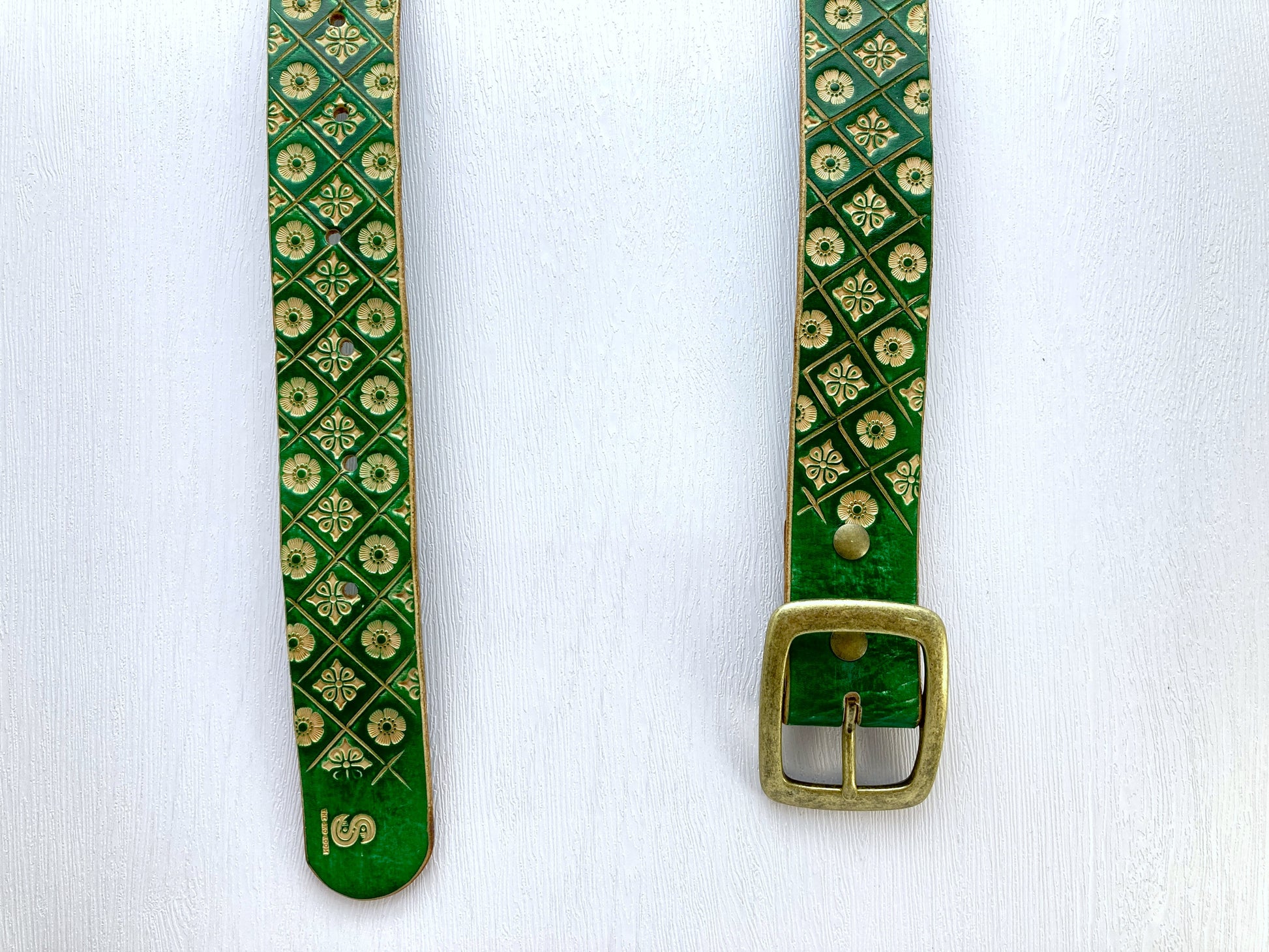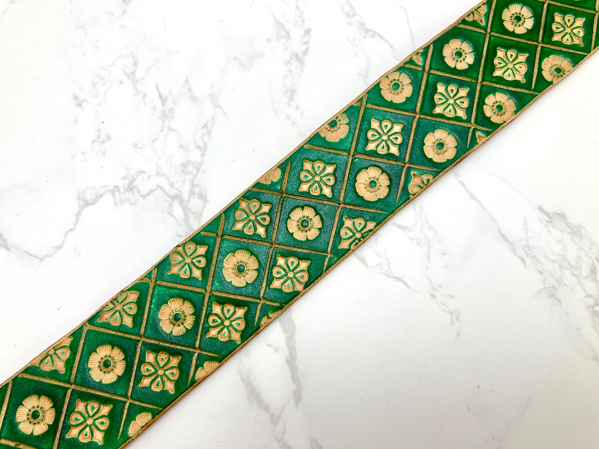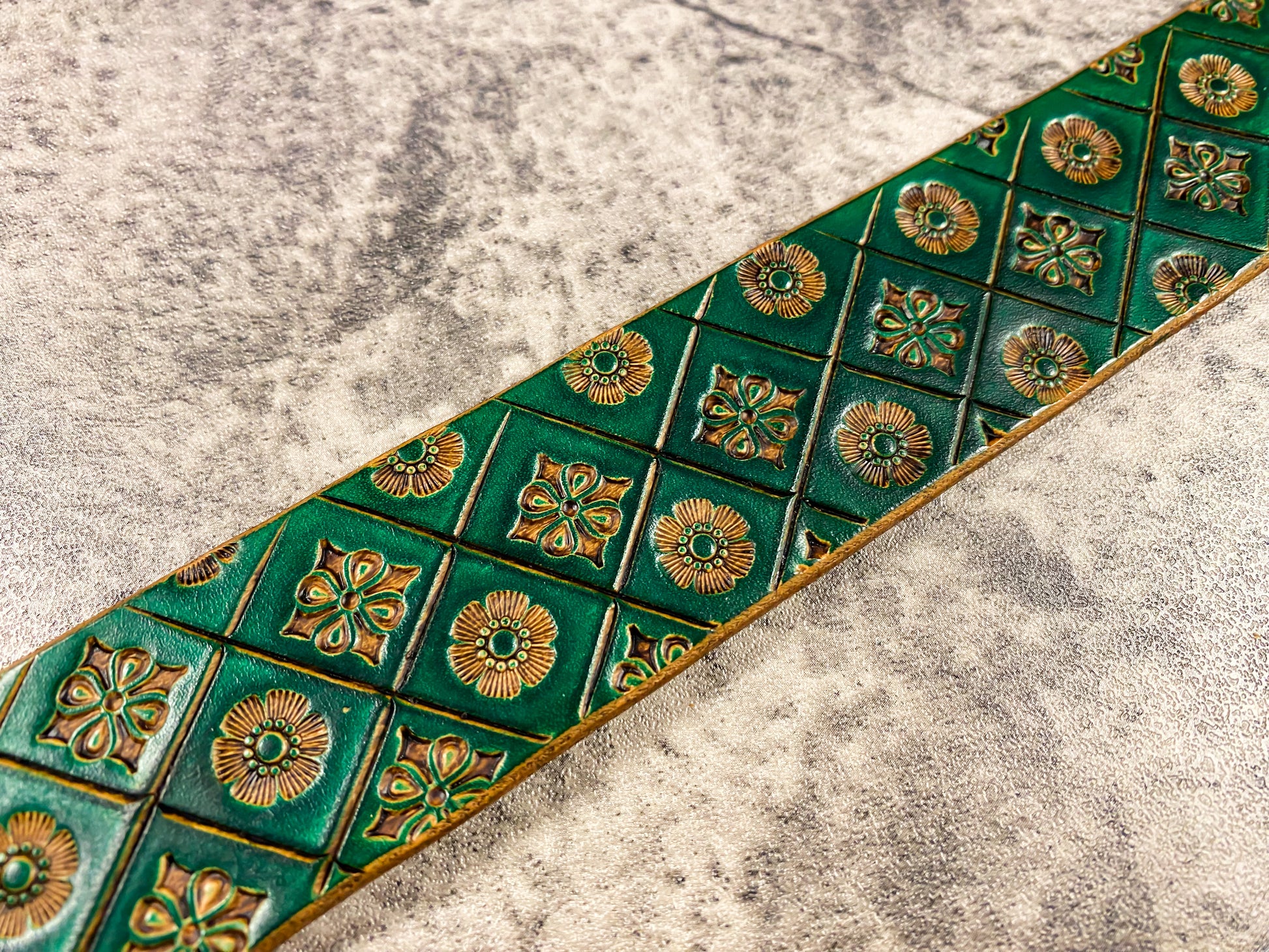 Inspired by the beauty of the natural world, this design features hand-tooled organic patterns that evoke the serenity of forests and greenery. Paired with a rich green hue, it symbolizes growth, harmony, and a connection to nature, making it perfect for those who cherish the outdoors.